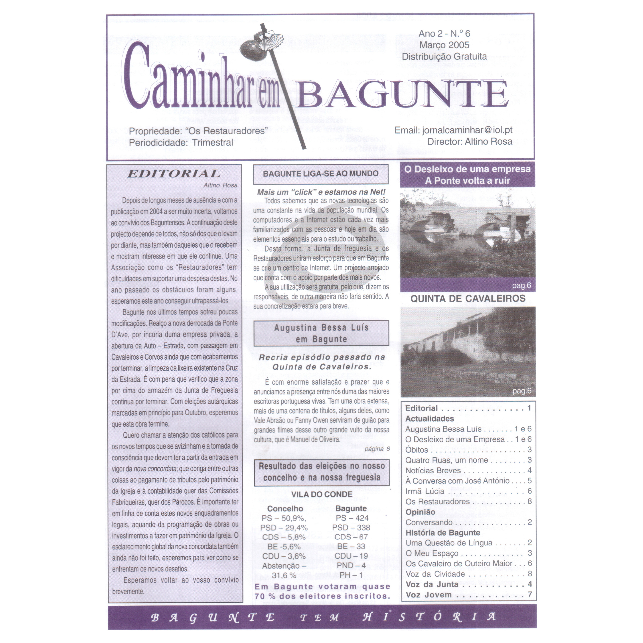 Foto4: “Caminhar de Bagunte”, Jornal dos Restauradores em colaboração com a Junta de Freguesia de Bagunte, de junho de 2003 a 2006.