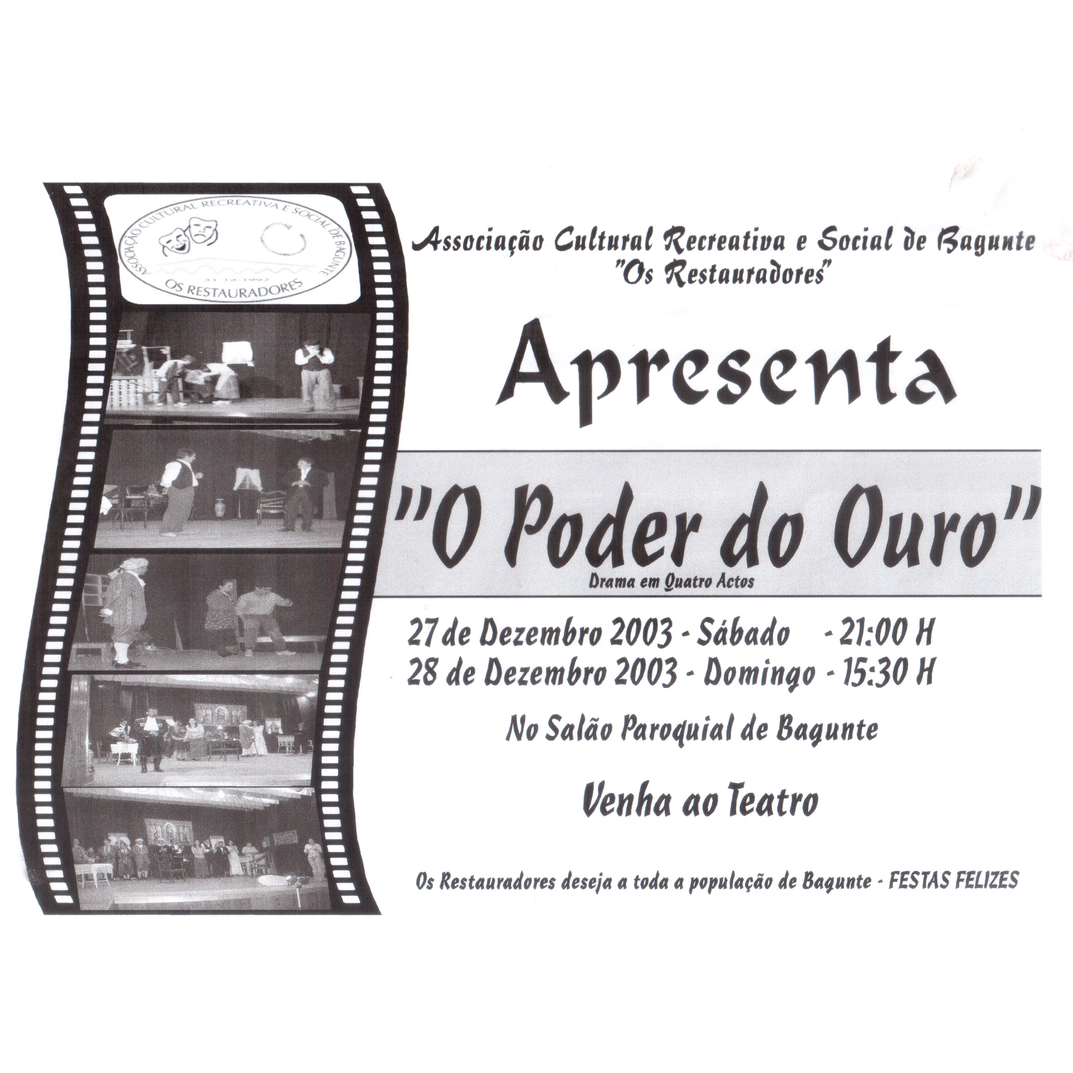 Foto5: Cartaz de 2003, a anunciar “O poder do ouro”, uma das várias peças encenadas pelos Os Restauradores.